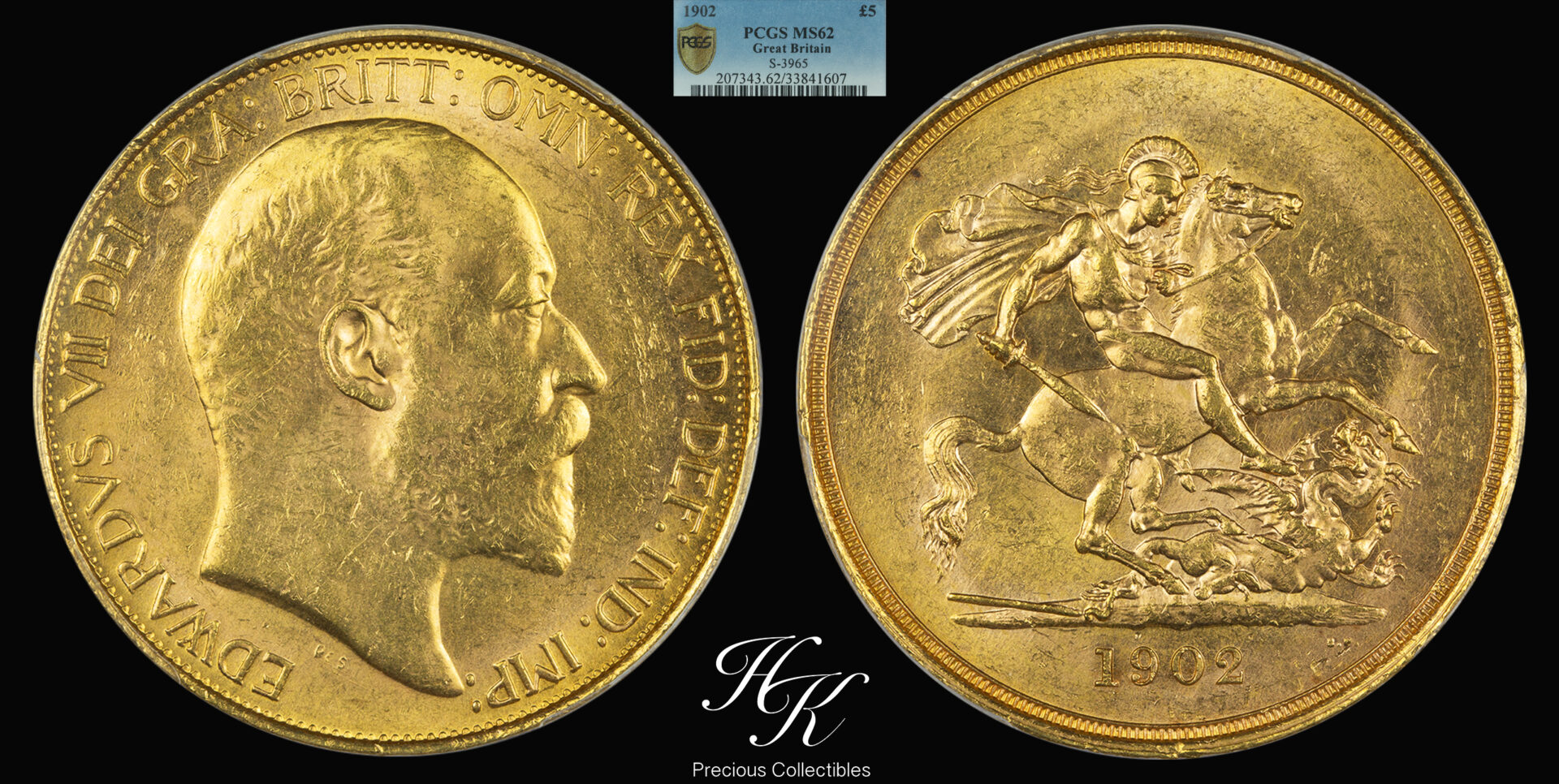 Gold quintuple sovereign (5 pounds) 1902 PCGS MS62 “EDWARD VII” Great Britain