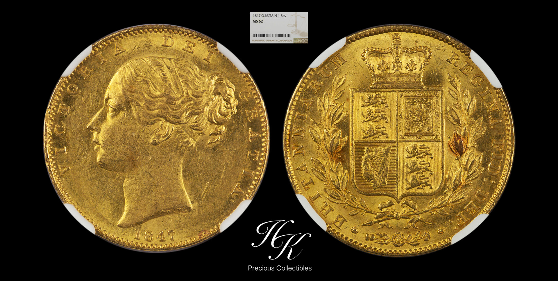 Gold shield sovereign 1847 NGC MS62 “Victoria” Great Britain