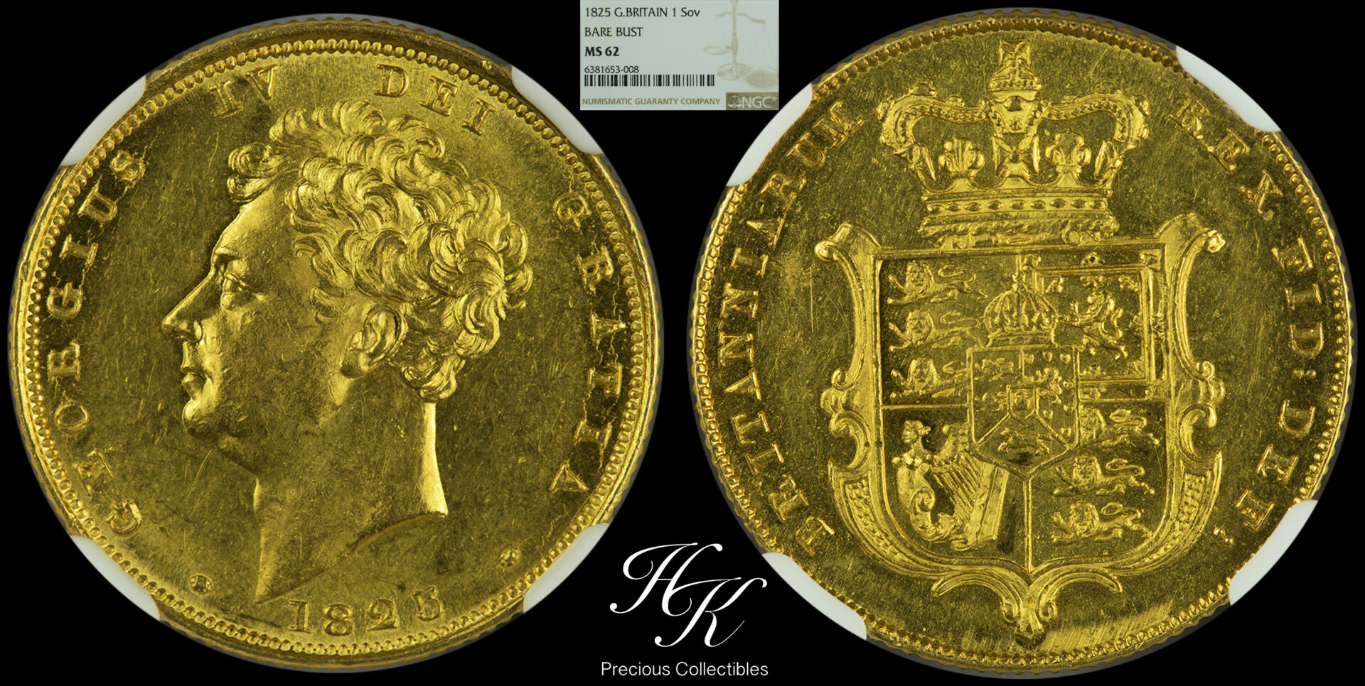 1825 George IV Bare Bust gold sovereign certified by NGC MS 62