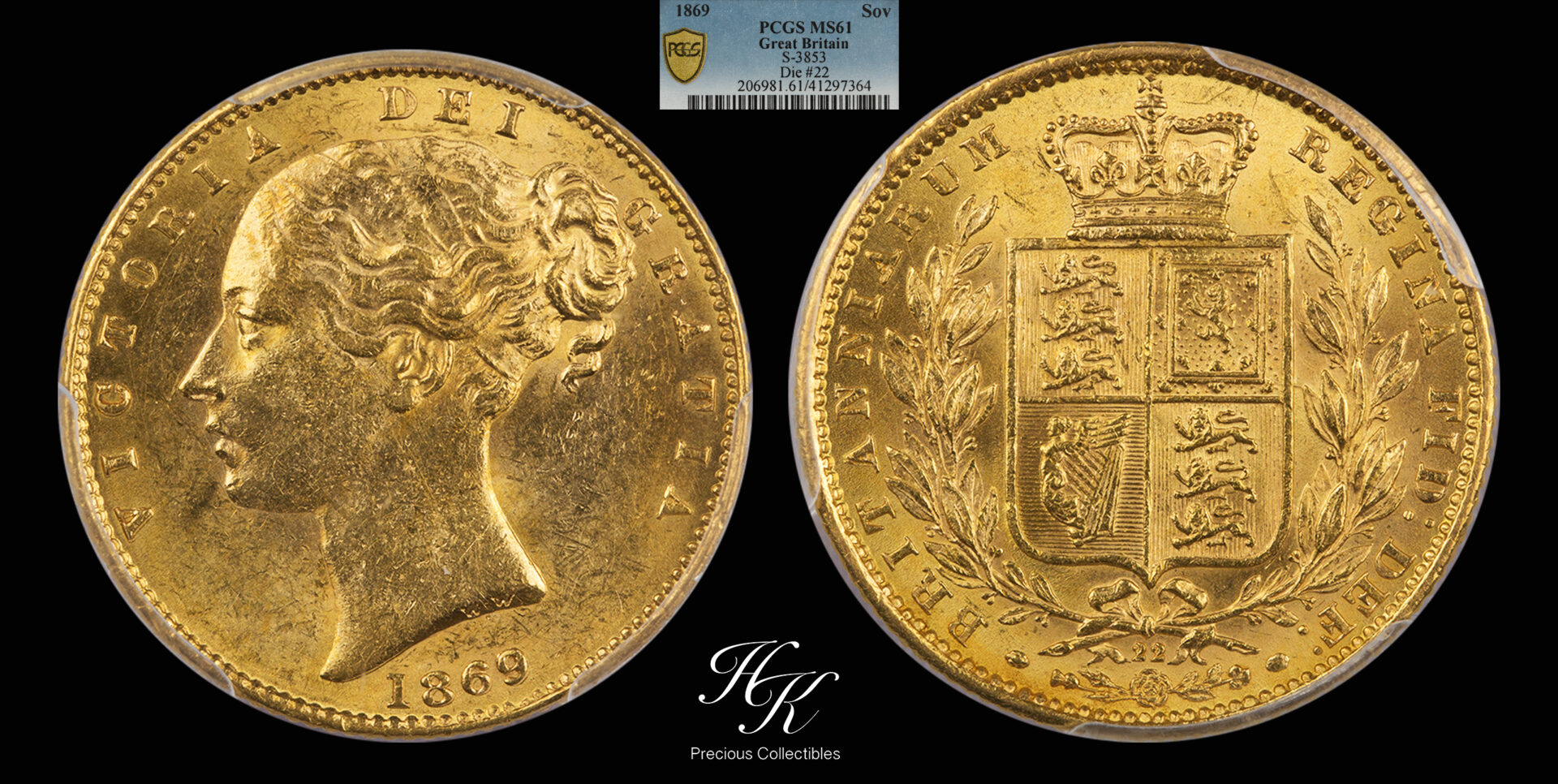 Gold sovereign 1869 “VICTORIA – SHIELD” PCGS MS61 Great Britain