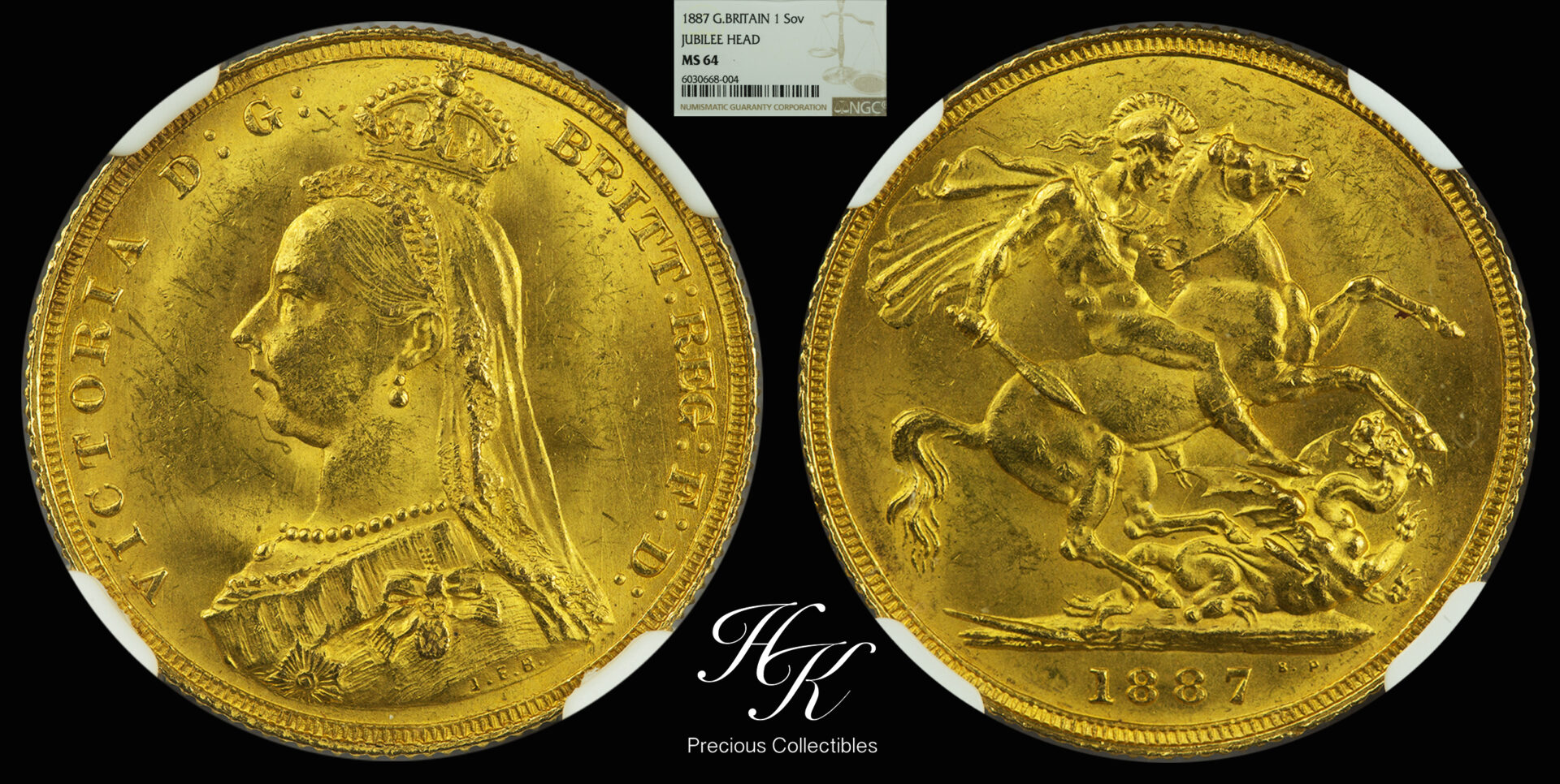 Gold sovereign 1887 “Victoria Jubilee Head” NGC MS64 Great Britain