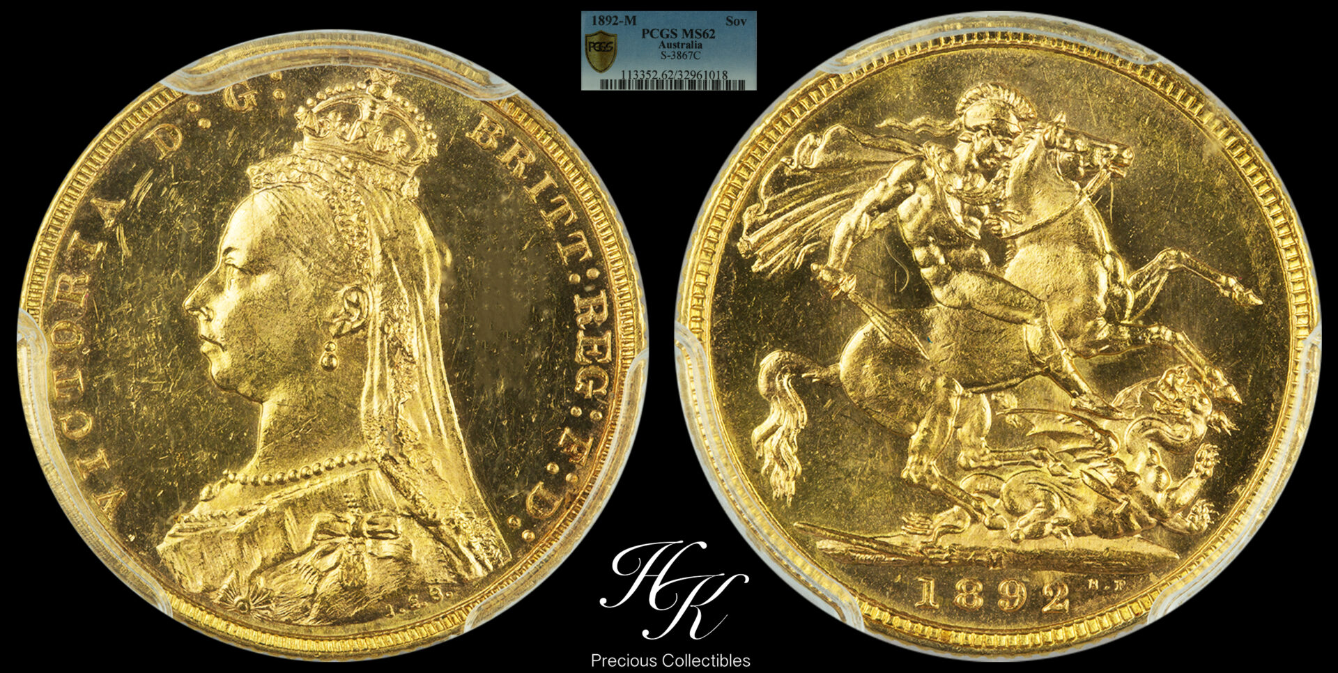 Gold sovereign 1892 Melbourne -Victoria- pcgs ms62 Australia