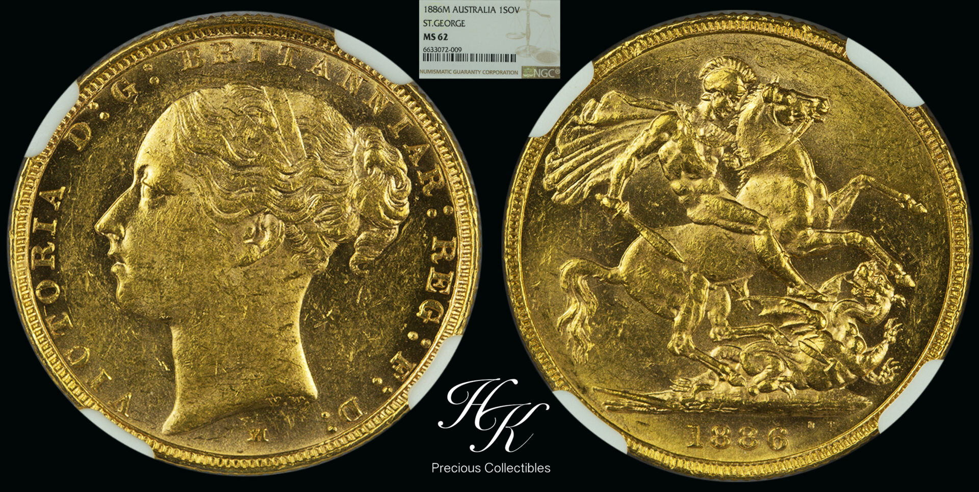 Gold sovereign “Victoria – young head ” 1886 Melbourne NGC MS62 Australia