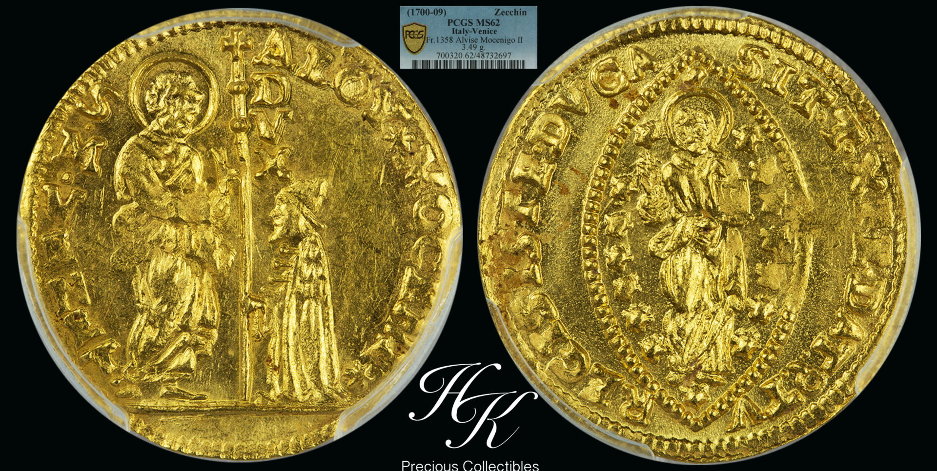 Gold zecchino 1700 – 1709 Alvise Mocenigo II PCGS ms 62 Venice Italy