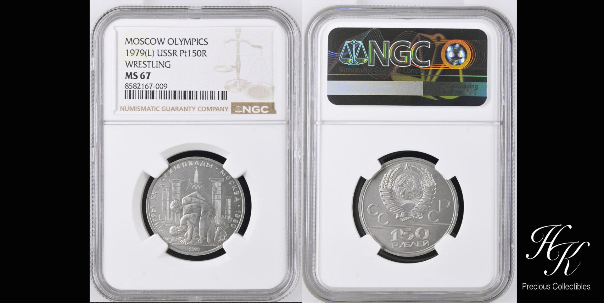 Platinum 150 Roubles “Wrestling” NGC MS67 1979 Russia