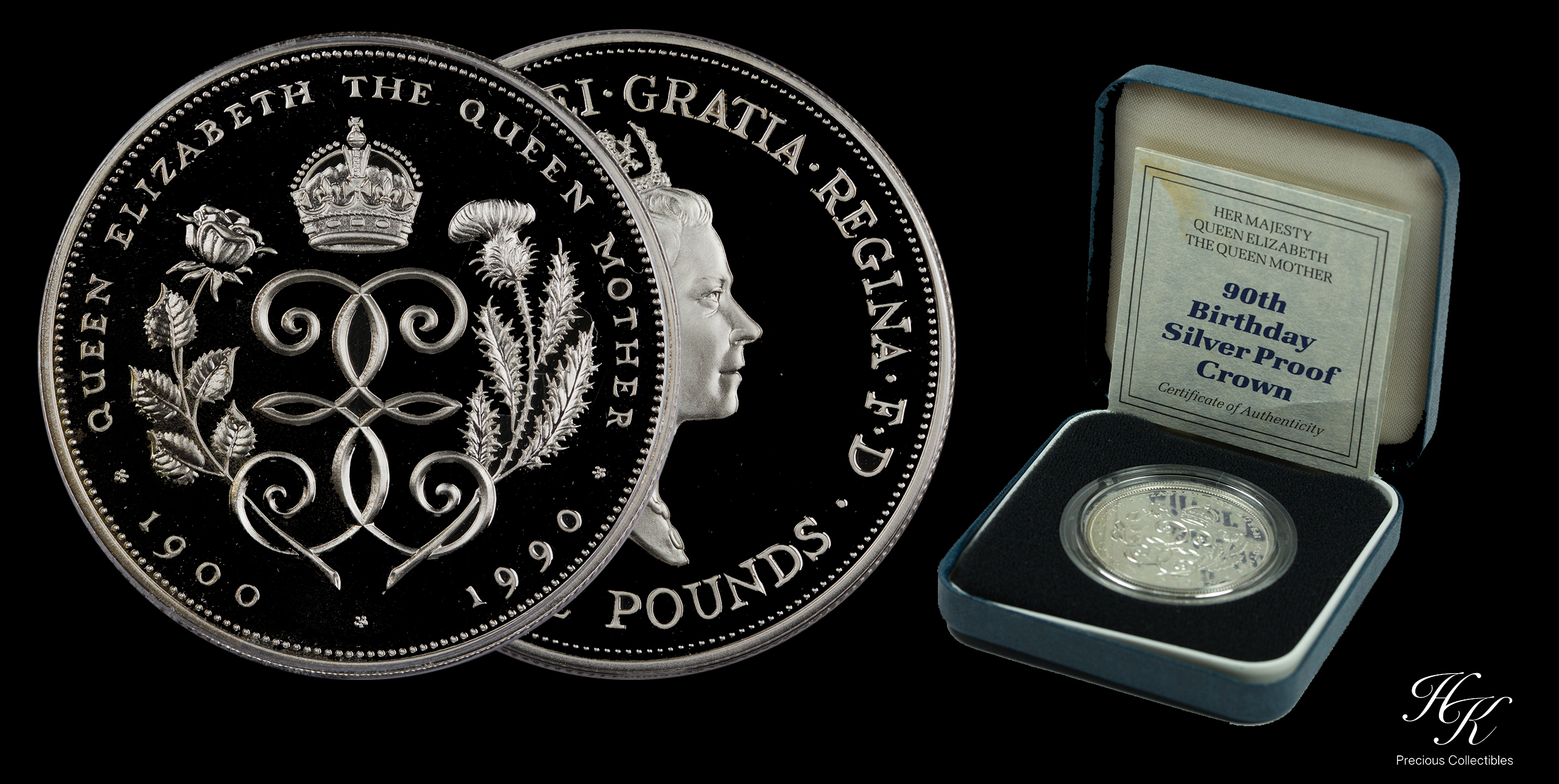 Proof Silver Crown 1990 “90th Birthday” Elizabeth Great Britain