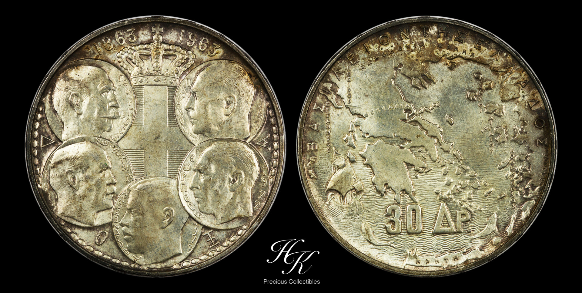 Silver 30 drachmai 1963 UNC -FIVE KINGS – Greece