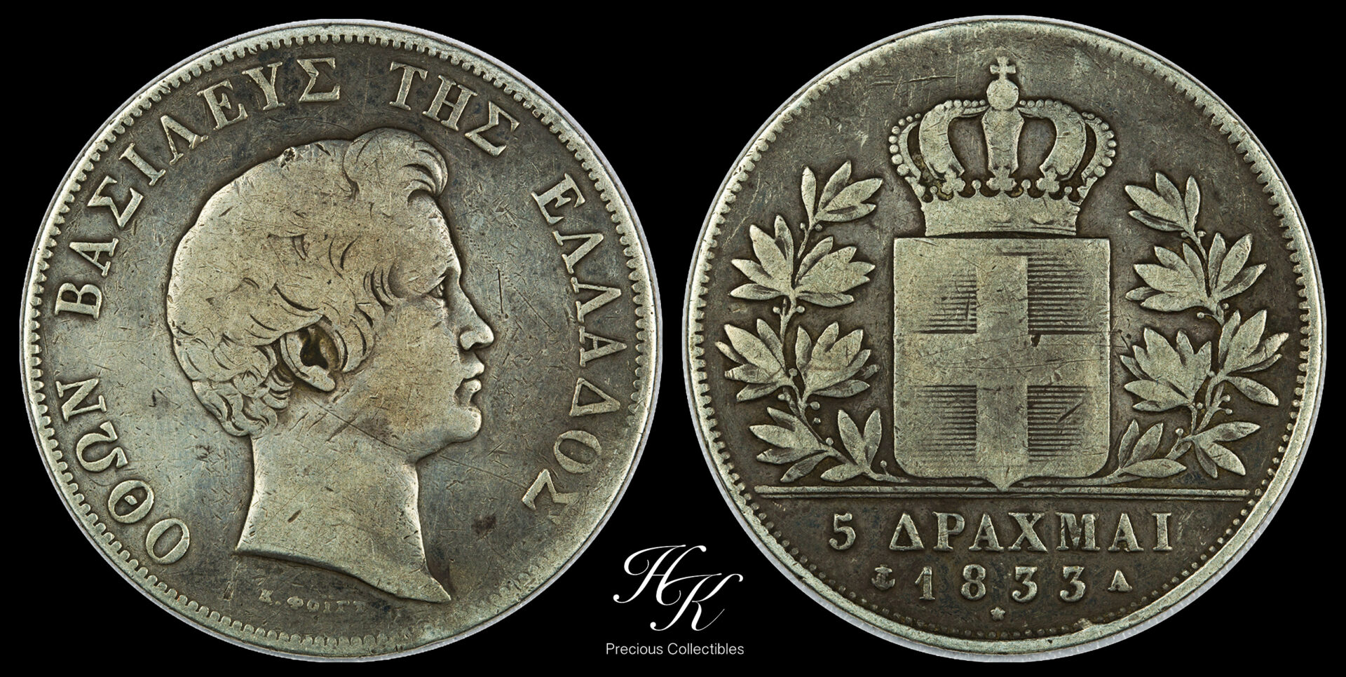 3. Silver 5 drachmai 1833 A “King Otto” Greece