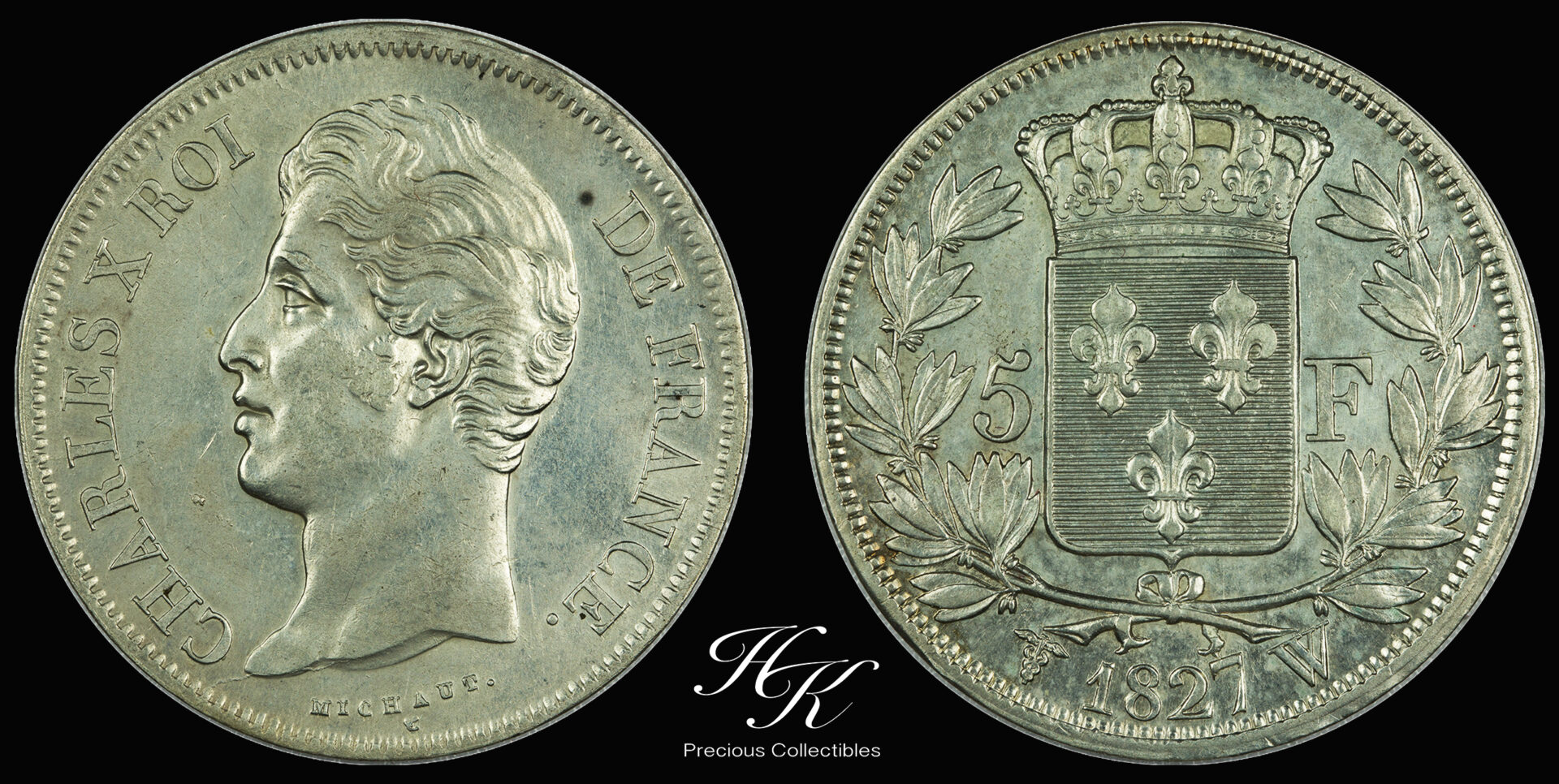 Silver 5 Francs Charles X – 1827 W Lille – France
