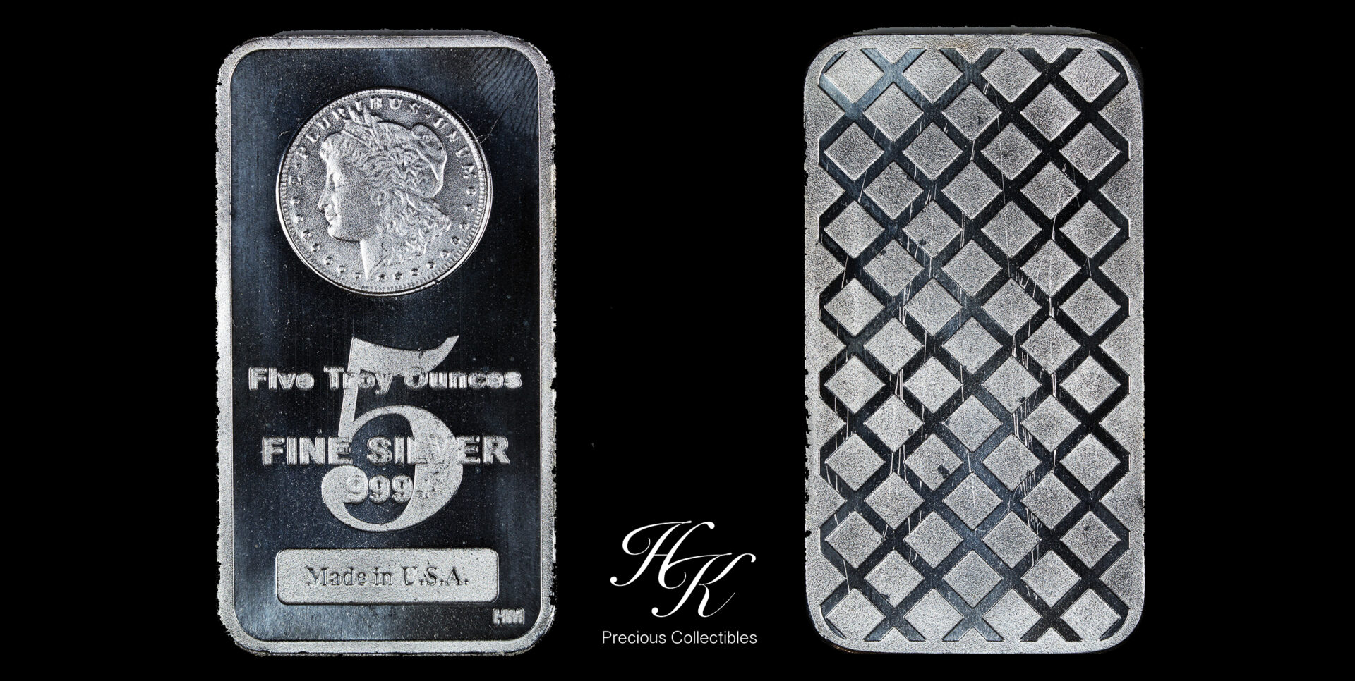 3. Silver 5 oz 999,9 Morgan Bar USA