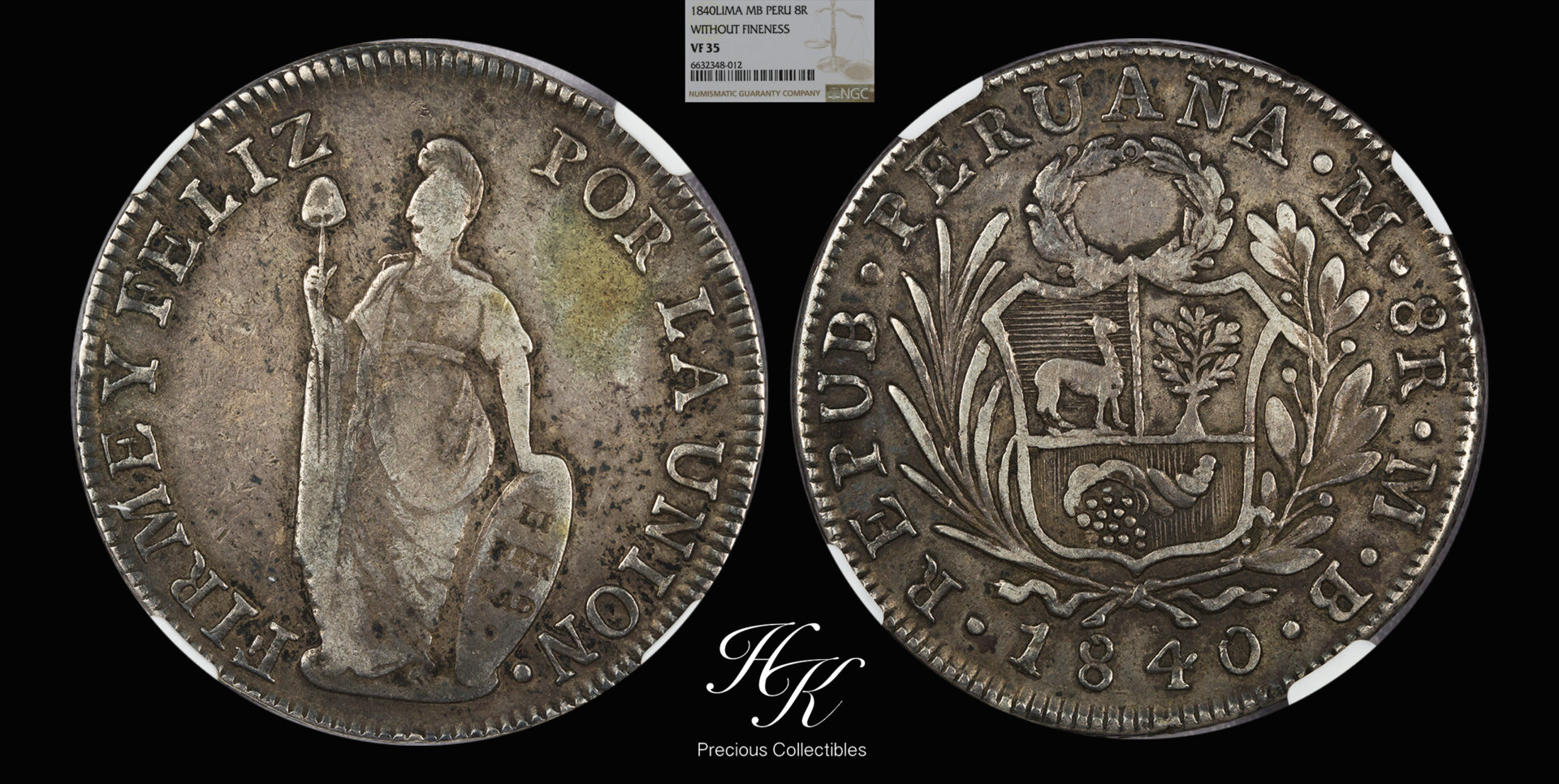 Silver 8 reales 1840 LIMA Mint NGC VF30 Peru
