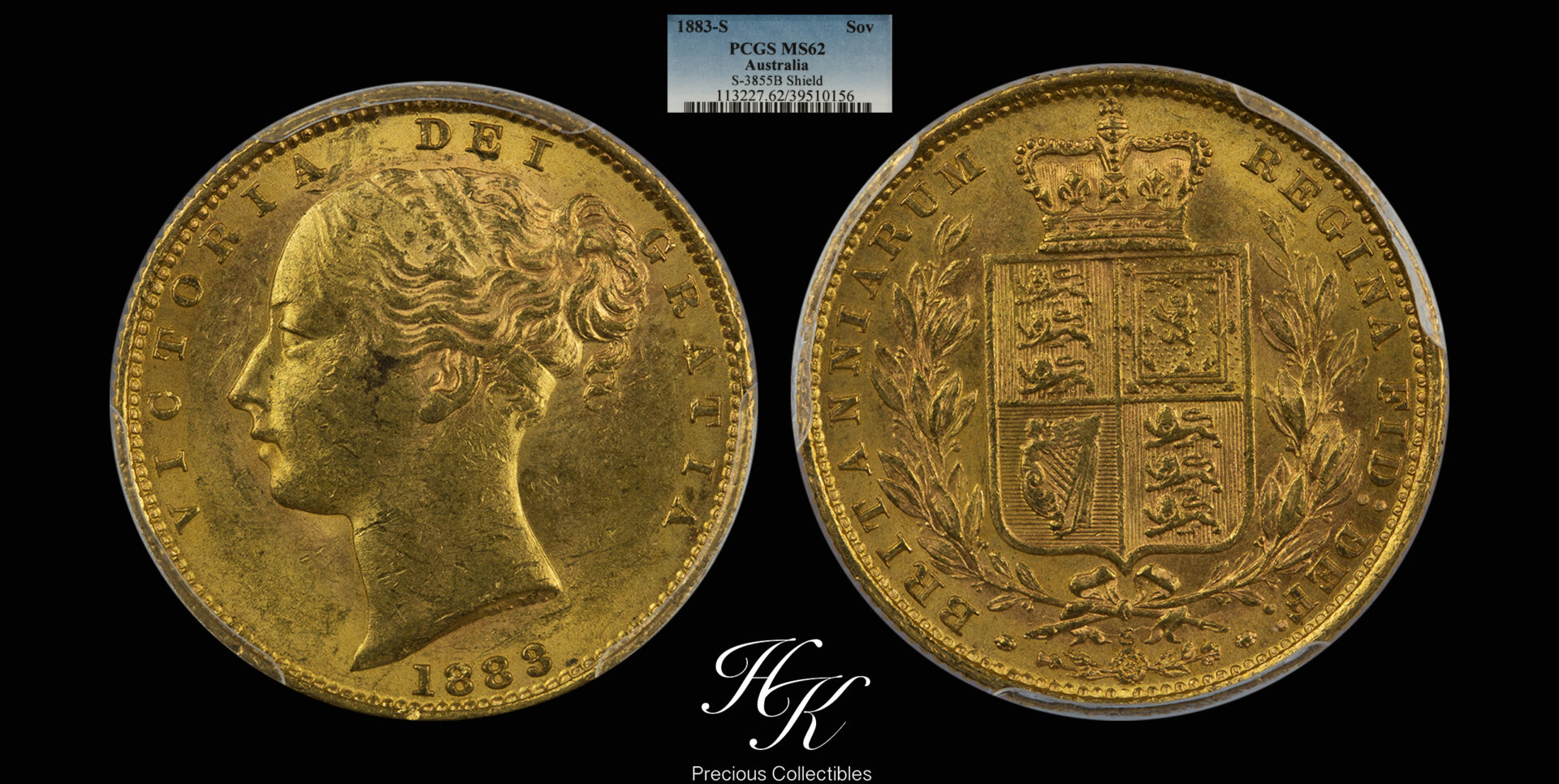 Sovereign 1883 Sydney “Shield” PCGS MS62 Australia Categories: All Coins, Gold Coins Description Description Sovereign 1883 Sydney “Shield” PCGS MS62 Australia uncirculated beauty!
