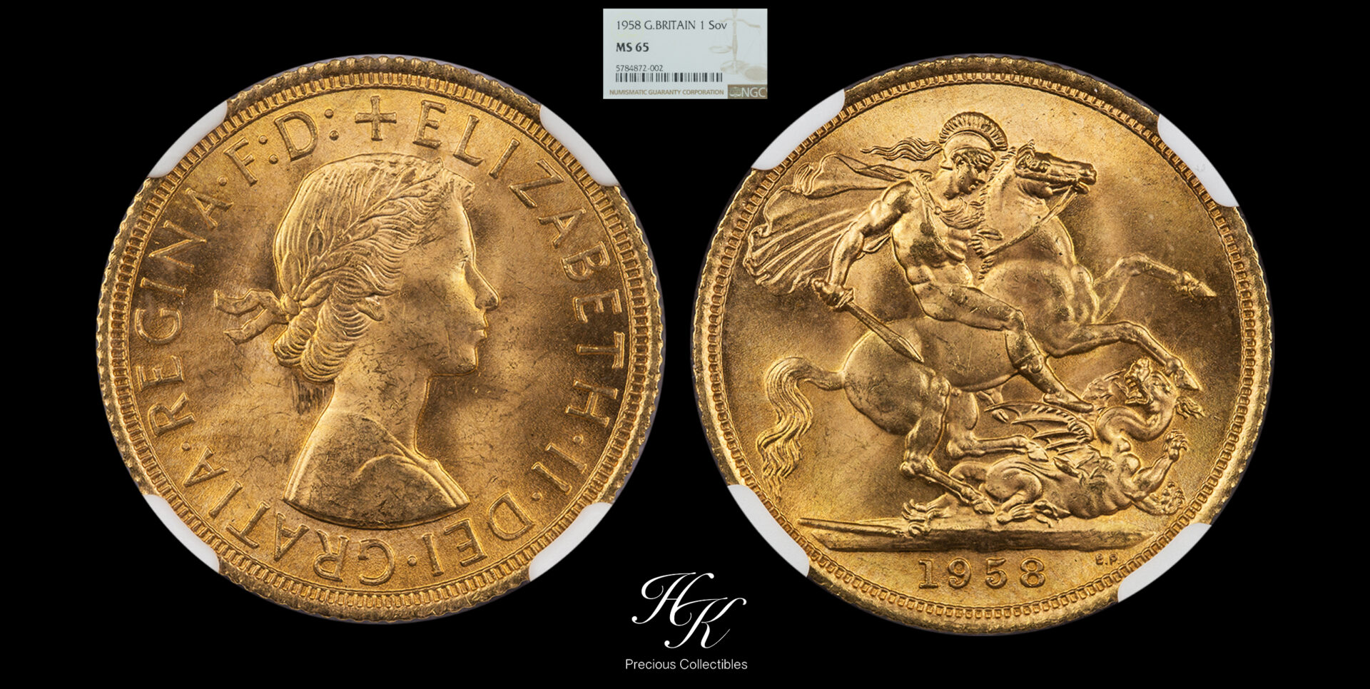 Sovereign 1958 Elizabeth II First Portrait PCGS MS65 Great Britain