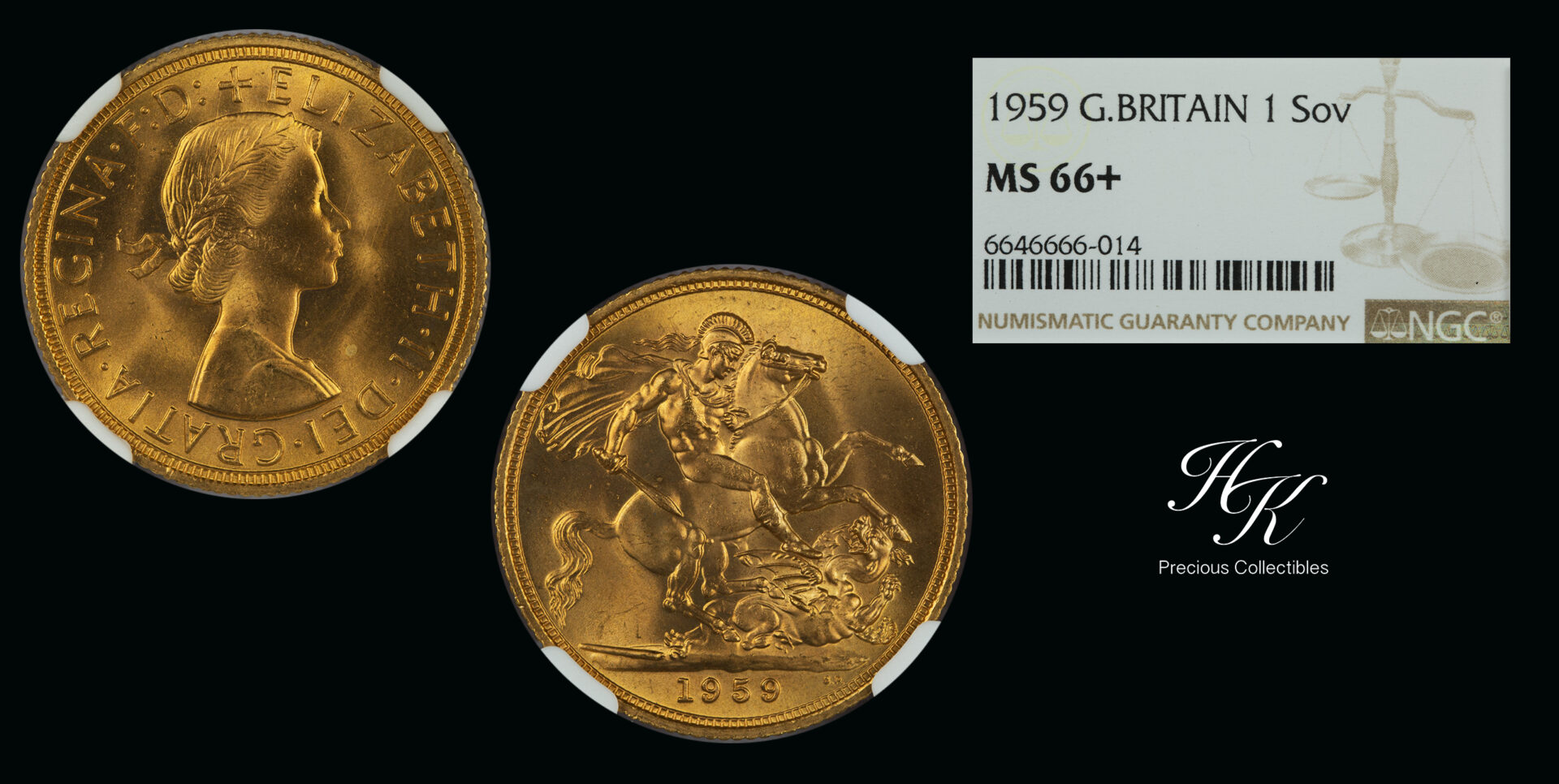 Sovereign 1959 Elizabeth II First Portrait NGC MS66+ Great Britain