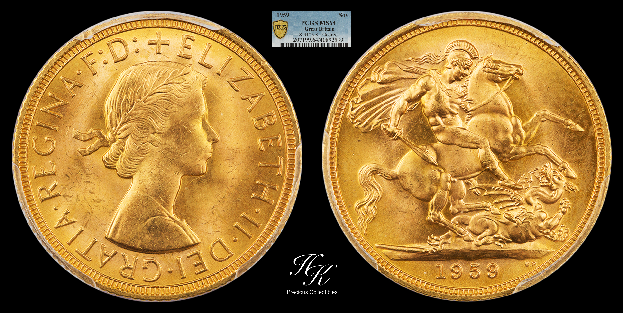 Sovereign 1959 Elizabeth II First Portrait PCGS MS64 Great Britain